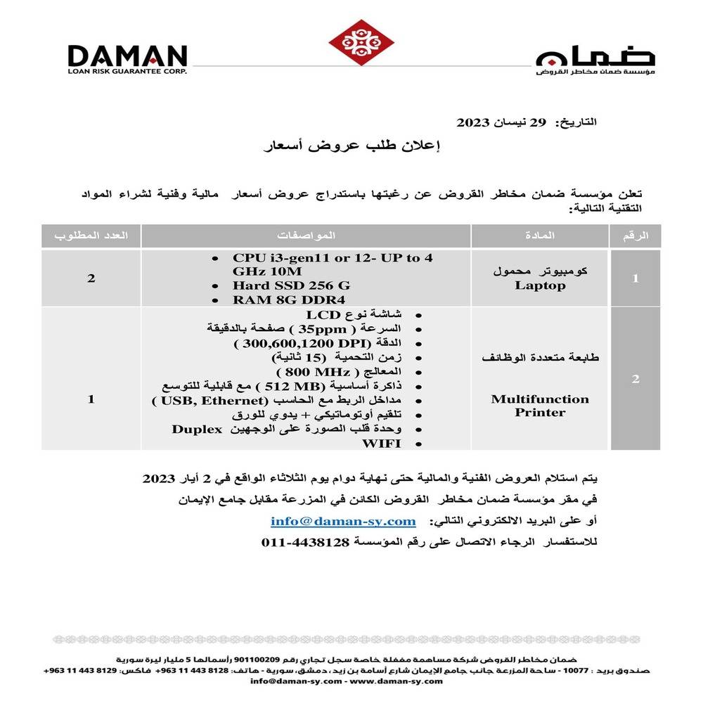 إعلان طلب عروض أسعار 29-04-2023