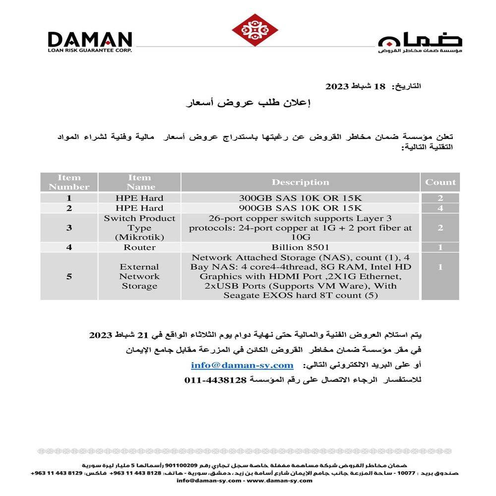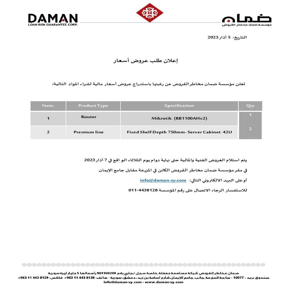 إعلان طلب عروض أسعار تجهيزات تقنية