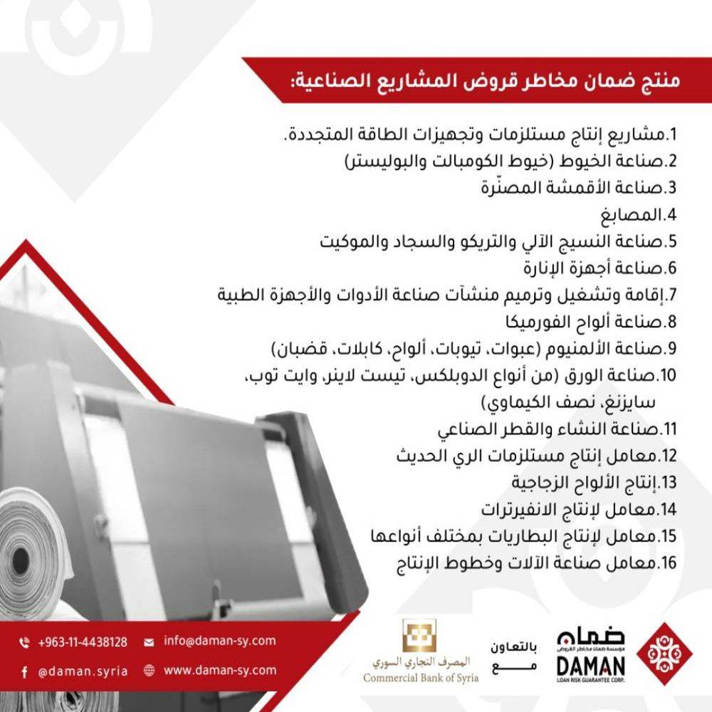 تعاوُن مؤسسة ضمان مخاطر القروض والمصرف التجاري السوري لتمويل ودعم المشروعات الصغيرة والمتوسطة