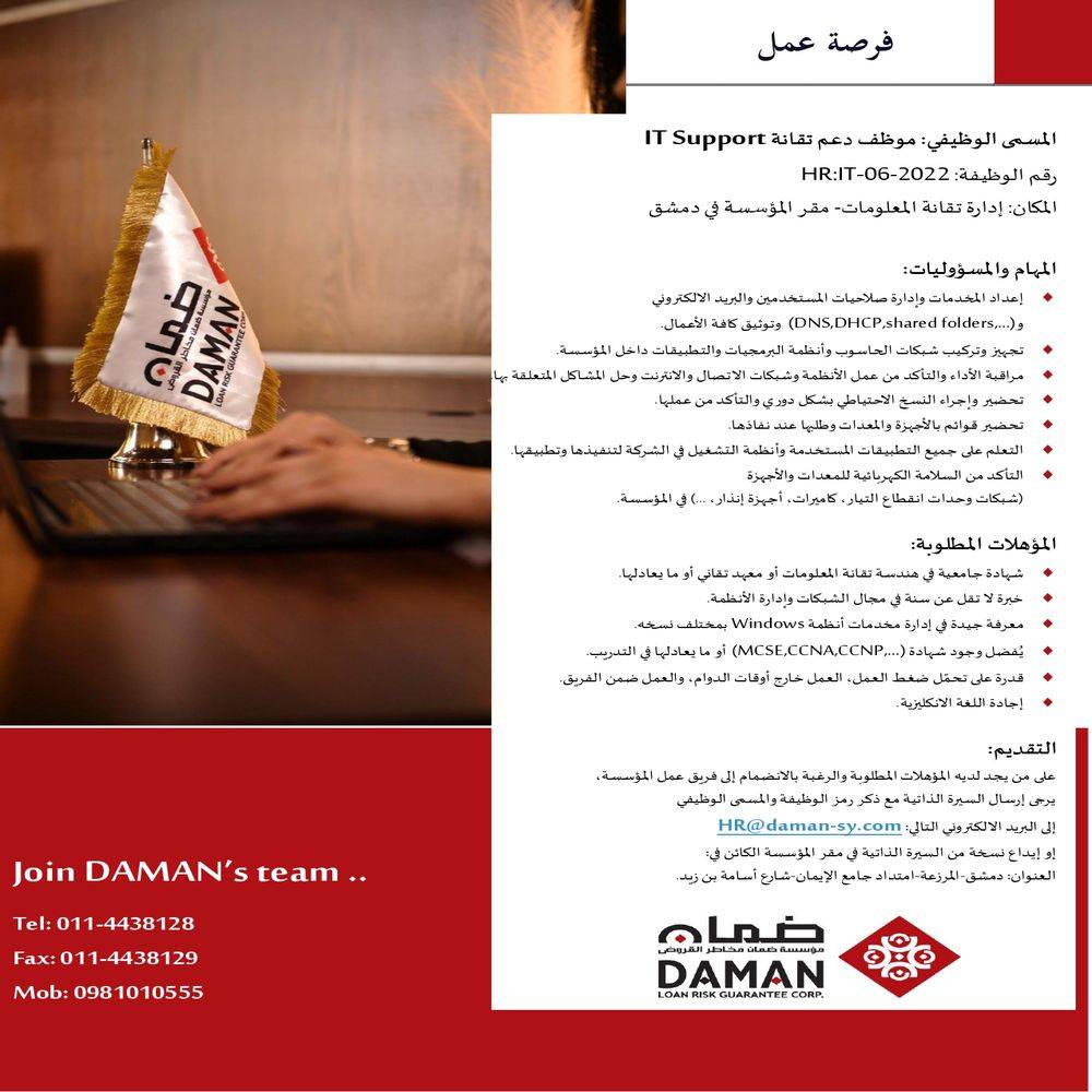 فرصة عمل-موظف دعم تقانة